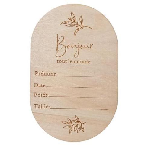 Carte en Bois à Compléter "Bienvenue" et "Bonjour" pour Bébé - Plaque de Naissance Personnalisée avec Prénom, Poids, Taille et Date - Idée Cadeau Souvenir Unique Personnalisable pour Nouveau-né