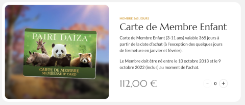 Cartes de Membres | Pairi Daiza : enfant de 3 à 11 ans (Cléo)