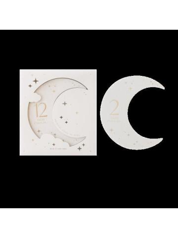 Immortalisez la première année de votre bébé avec le coffret de cartes étapes Moon. Composé de 12 cartes étapes au design poétique, ce coffret vous permettra de prendre de superbes photos souvenirs et d’annoter au dos l’évolution de bébé mois après mois ! Un pochon en coton est également fourni pour conserver précieusement les jolies cartes.