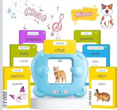 Cartes Flash Parlantes Bilingual (Français et Anglais), Flash Jouets éducatifs pour Enfant .Cartes éducatives Enfants pour écouter et Apprendre 224 Mots (Bleu)