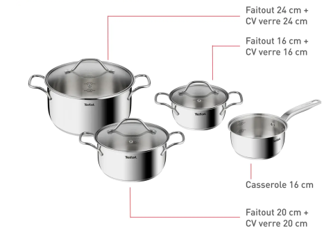 Intuition Set 7 pcs Casserole 16 cm, Faitouts 16/20/24 cm + couvercles | BATTERIES DE CUISINE COMPLETES | Tefal