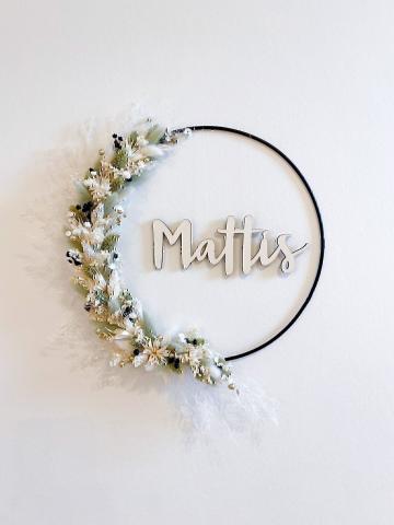 en toute liberté. Il est possible d'ajouter toutes vos envies cadeaux et de recevoir les dons directement sur votre compte. Avec les dons reçus, vous êtes alors libre d'aller acheter vos produits (comme ce 'Cerceau prénom en fleurs séchées