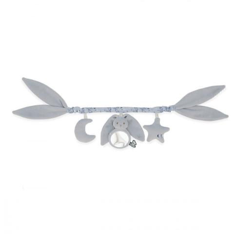 Éveillez bébé avec cette chaine d'activités lapin en coloris bleu. 3 jouets suspendus amusants pour la poussette ou le cozy, lavables en machine. Dès la naissance.