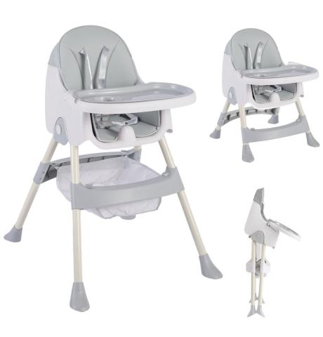 Chaise de salle à manger pliante - Siège enfant - Avec panier de rangement - Chaise bébé réglable - Chaise enfant - Harnais 5 points - Coussin en cuir amovible - Chaise évolutive - Gris.