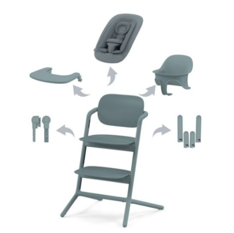 Pack chaise Lemo 4-en-1 (Chaise + transat + babyset + plateau repas) Stone Blue de la marque Cybex.