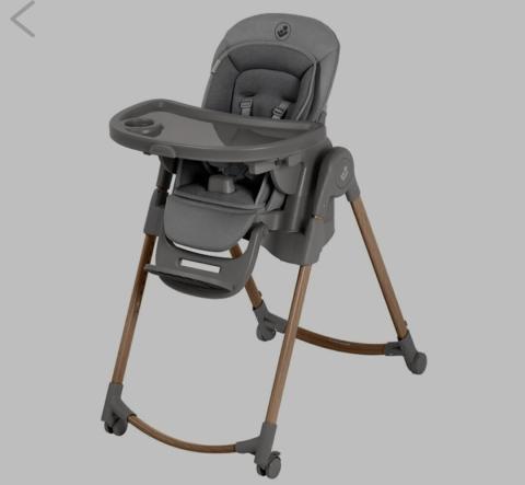 La Minla Plus dans son coloris elegance graphite est une chaise haute entièrement réglable proposée par la marque incontournable Maxi-Cosi.