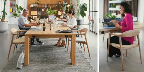 Chaise en hêtre clair avec canage clair. Voir avec Claudine