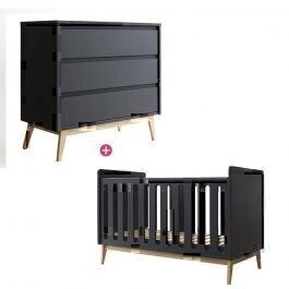 La chambre Duo Pure Black de Péricles est composée du lit bébé 70 x 140 cm et de la commode 3 tiroirs.