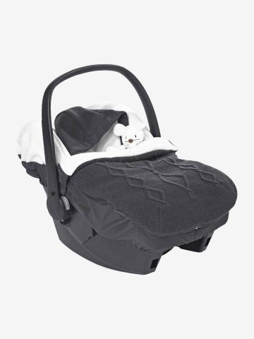 Chancelière coque tricot maille torsadée gris - Jolie et bien pensée, cette chancelière spéciale coque est parfaite pour garder bébé bien au chaud lors de ses sorties !
