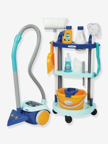 Ensemble de ménage regroupant un chariot de ménage complet pour nettoyer le sol et son aspirateur traineau. En tout 11 accessoires.