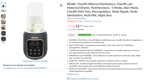 en toute liberté. Il est possible d'ajouter toutes vos envies cadeaux et de recevoir les dons directement sur votre compte. Avec les dons reçus, vous êtes alors libre d'aller acheter vos produits (comme ce 'chauffe biberon et petits pots/stérilisateur/décongelation
