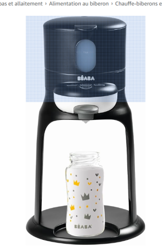 PRATIQUE distribution d'eau chauffée directement dans le biberon, partie haute amovible et emboîtable dans la base