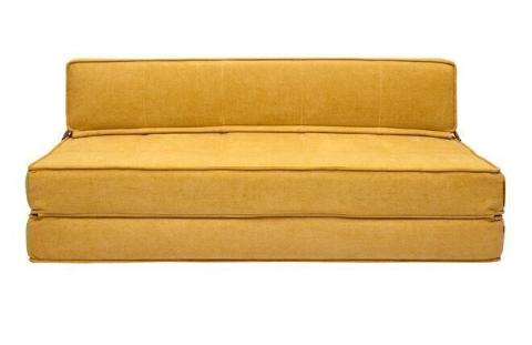 Chauffeuse 2 places convertible en tissu effet velours jaune moutarde KATY - Miliboo