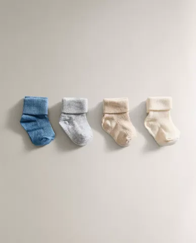 Chaussettes multicolores conçues pour les nouveau-nés et les bébés. Elles sont vendues en lot de 4 unités et chaque paire est d’une couleur différente.