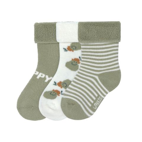 Les chaussettes Terry pour enfants au design khaki de LÄSSIG, certifiées GOTS, ont une forte teneur en coton (bio). Ces chaussettes douces complètent tous les looks avec leurs imprimés audacieux et colorés.