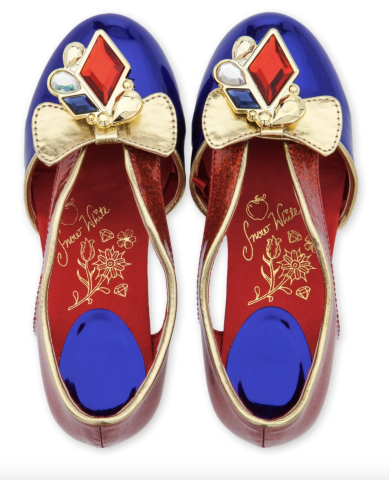 C'est la Reine qui va être jalouse des plus belles chaussures de toutes ! Avec leurs bouts métalliques, finitions dorées et strass à facettes, elles se marient parfaitement avec notre déguisement Blanche Neige.