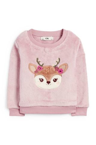 Sweat en peluche moelleuse, orné d’un chevreuil, de petites broderies et de sequins brillants | C&A