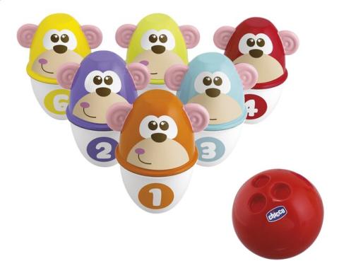 Hoeveel kegeltjes gaan er tegen de vlakte als je kindje de bal gooit? Met de Bowling Monkey Strike van Chicco kan je kindje z'n pret niet op!