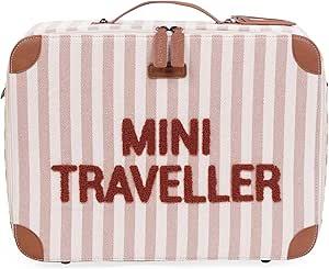 CHILDHOME, Kinderkoffer, weekend, cabineformaat, handbagage, compact, robuust, handvat voor eenvoudig transport, naamplaatje, design, kunstleer, uniseks, mini-reiziger, terracotta strepen : Amazon.com.be: Mode