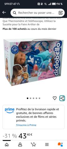 Ce produit est extrait d'une liste de cadeaux (Anniversaire, Noël, ...) déposée sur Kadolog. Kadolog permet de créer des listes de cadeaux (Anniversaire, Noël, ...) en toute liberté. Il est possible d'ajouter toutes vos envies cadeaux et de recevoir les dons directement sur votre compte. Avec les dons reçus, vous êtes alors libre d'aller acheter vos produits (comme ce 'Cicciobello Bua, Interactive Doll with Accessories, Children's Games 2 Years, with Care Accessories such as Thermometer and Stethoscope, Use the Dummy to Stop Her : Amazon.fr: Toys & Games ') où et quand vous le souhaitez.