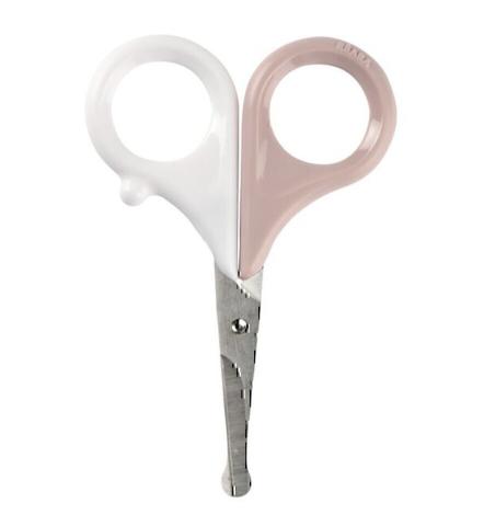 Ciseaux bébé Béaba rose avec bout rond pour couper les ongles de bébé en toute sécurité.