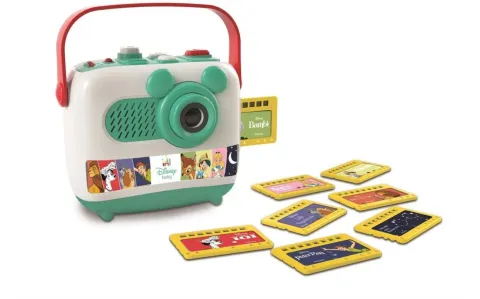 Projecteur et conteur d’histoires Disney Baby avec 8 contes et veilleuse multicolore.