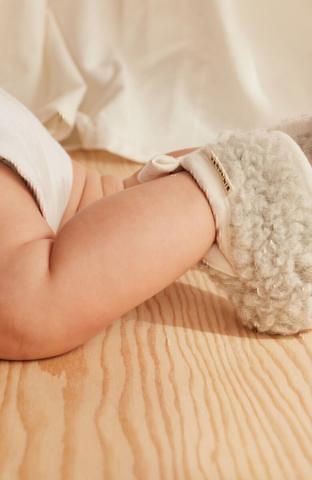 Our Sheepskin Booties Made with a 100% Merino Wool Upper & a Leather Sole. Sheepskin Baby Booties presented in their own mini BINIBAMBA dustbag.