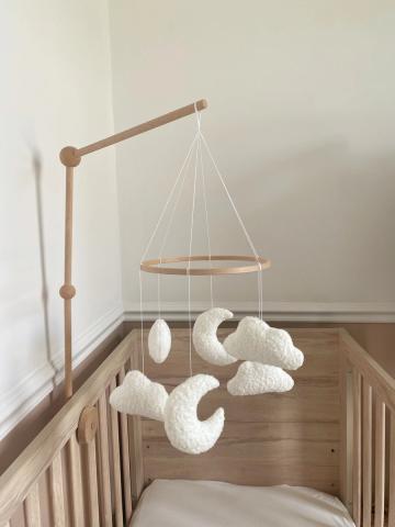 Onze super populaire cloud & moon baby mobiel wordt binnenkort je nieuwe favoriete kinderkamer decoratie. Elke mobiel is voorzien van mini wolkjes en maantjes en is subtiel met de hand gemaakt in Yorkshire. Dit decoratieve kinder accessoire is perfect voor een neutrale ruimte en is gemaakt van luxe, getextureerde b