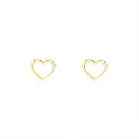 Clous d'oreilles Cœur Or Oxyde de Zirconium Ronde Jaune 375/1000 - 13160197388R00 • Histoire d'Or
