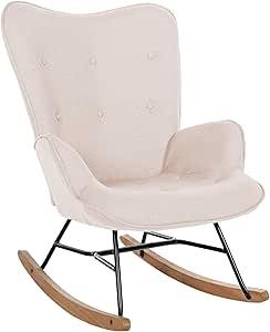 CLP Chaise A Bascule Sanka en Tissu I Fauteuil A Bascule avec Support en Métal I Fauteuil De Relaxation avec Patins en Bois Crème : Amazon.fr: Jardin