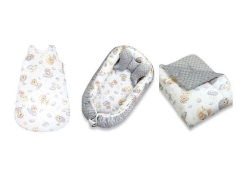 Lot d'un cocon (réducteur de lit), une couverture 75x100 et une gigoteuse 0-6mois. Ces 3 éléments ont le mêmes dessins de koala.