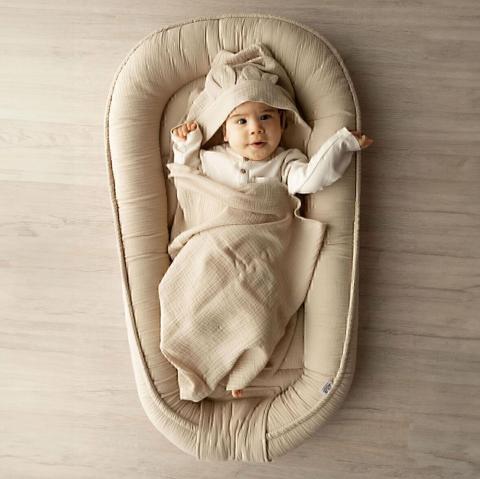 PaLulli Baby Nest 100% coton Mousseline 100 x 60 cm avec rabat velcro et matelas à langer Cocoon pour bébés et tout-petits (beige)
