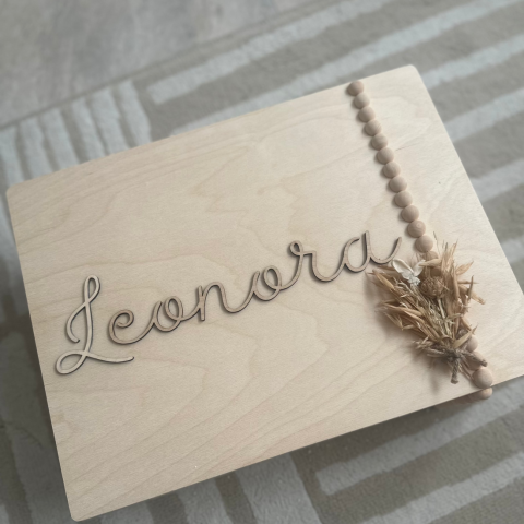Magnifique coffre en bois pour garder les souvenir les plus précieux de bébé, composez-le et garnissez-le des accessoires que vous souhaitez! Grand modèle (poignées coeur) : 40x30x24cm