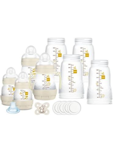 Mam Ensemble de 8 biberons de 130 ml, 160 ml et 260 ml, 1 tétine Start Nanò, 4 disquettes, 1 bec souple et poignées, couleur beige - 730 g, 14,2 x 16,8 x 21,2 cm ; 720 grammes