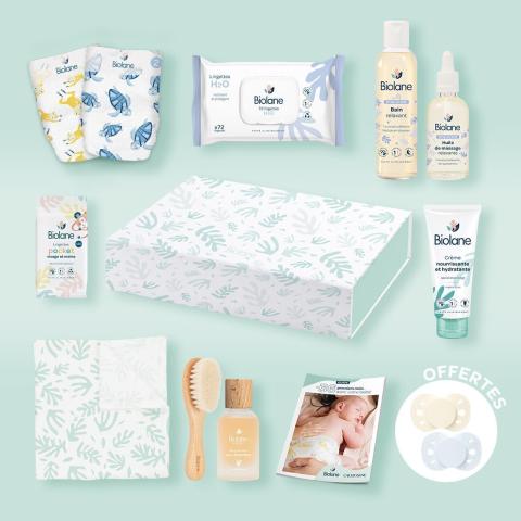 Idéal à offrir pour une naissance ou une baby shower, ce coffret cadeau haut de gamme est un indispensable pour prendre soin d'un nouveau-né dès ses premiers jours de vie. Il est composé de produits d'hygiène et soin, de couches, d'un lange en coton, d'une brosse toute douce et d'un guide pour accompagner les parents dans les premières étapes de la vie d'un bébé.