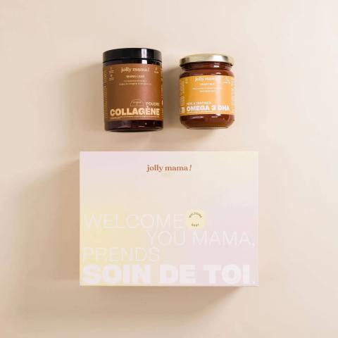 Coffret cadeau naissance ▶ Idéal pour les mamans pendant la grossesse et après accouchement ✔️ Poudre cacao collagène ✔️ Pâte à tartiner