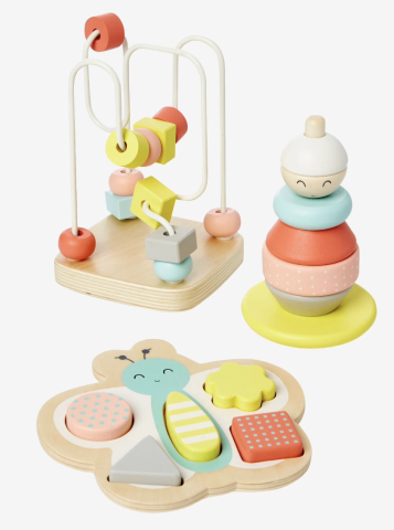 en toute liberté. Il est possible d'ajouter toutes vos envies cadeaux et de recevoir les dons directement sur votre compte. Avec les dons reçus, vous êtes alors libre d'aller acheter vos produits (comme ce 'Coffret de 3 jeux d'éveil en bois Vertbaudet