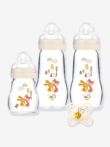 Coffret de biberons en verre MAM beige - Le coffret de biberons en verre Mam