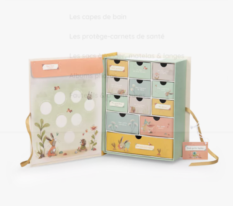 en toute liberté. Il est possible d'ajouter toutes vos envies cadeaux et de recevoir les dons directement sur votre compte. Avec les dons reçus, vous êtes alors libre d'aller acheter vos produits (comme ce 'Coffret naissance Tout autour du monde Moulin Roty