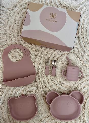 Ce coffret repas BB Cocoon est idéal pour les bébés experts de la diversification alimentaire. Contient : 1 petite assiette panda, 1 assiette compartimenté panda, 1 lot de couverts en inox x2, 1 bavoir, 1 tasse d’apprentissage.