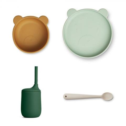 Choisissez ce coffret repas bébé de la marque Liewood. Comprend une assiette, un bol, un gobelet et une cuillère. Plusieurs coloris. Livraison rapide...