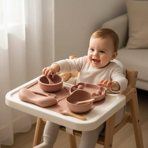 Avec le Coffret Repas Bébé Complet en Silicone, facilitez chaque moment à table avec des accessoires pratiques, sûrs et adaptés aux tout-petits.