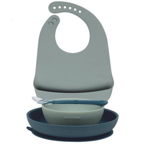 Un coffret repas complet et pratique pour les repas de bébé ! Il est composé d’une assiette et d’un bol avec ventouse, d’un bavoir et d’une cuillère.
