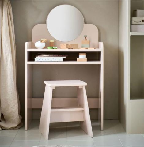 Coiffeuse enfant rose bois avec chaise ✔️ Petite Amélie