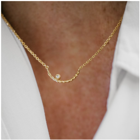 Collier en argent 925 plaqué or (5 microns) et petit diamant de 1,7mm fabriqué à la main avec amour par Lou (et sa petite équipe) dans son joli atelier niché au cœur de Bruxelles. Longueur: 42 - 46 cm. Garantie: 2 ans.