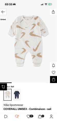 Ce produit est extrait d'une liste de naissance déposée sur Kadolog. Kadolog permet de créer des listes de naissance en toute liberté. Il est possible d'ajouter toutes vos envies cadeaux et de recevoir les dons directement sur votre compte. Avec les dons reçus, vous êtes alors libre d'aller acheter vos produits (comme ce 'Combi Nike ') où et quand vous le souhaitez.