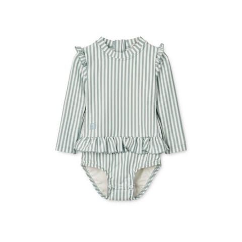 Pour anticiper l'été, une combinaison de bain à manches longues taille 1 an (Liewood, en solde).
