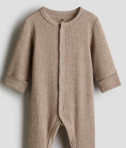 Combinaison côtelée en jersey de coton très doux. Modèle à manches longues avec fermeture pressionnée devant, se prolongeant le long des jambes. Manches et jambes terminées par bord repliable présentant une grande longueur afin de s’adapter à la croissance de l’enfant.