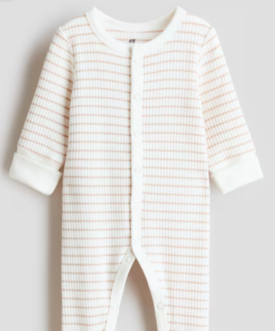 Combinaison côtelée en jersey de coton très doux. Modèle à manches longues avec fermeture pressionnée devant, se prolongeant le long des jambes. Manches et jambes terminées par bord repliable présentant une grande longueur afin de s’adapter à la croissance de l’enfant.