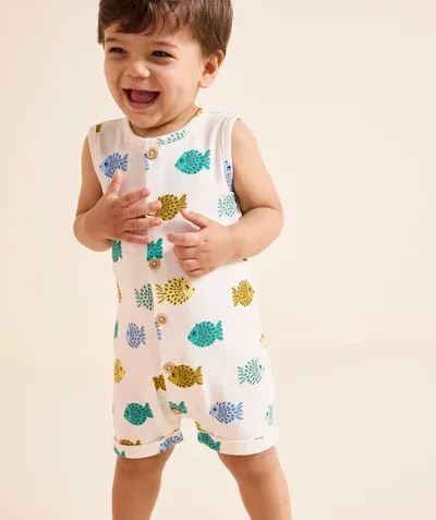 Ce produit est extrait d'une liste de cadeaux (Anniversaire, Noël, ...) déposée sur Kadolog. Kadolog permet de créer des listes de cadeaux (Anniversaire, Noël, ...) en toute liberté. Il est possible d'ajouter toutes vos envies cadeaux et de recevoir les dons directement sur votre compte. Avec les dons reçus, vous êtes alors libre d'aller acheter vos produits (comme ce 'Combishort bébé garçon en coton bio imprimé poissons - whisper white | Tape à l'oeil ') où et quand vous le souhaitez.